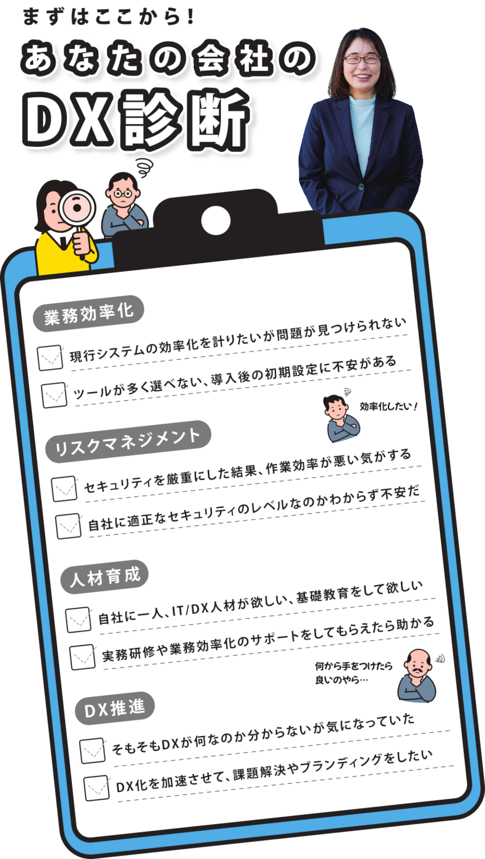 DX手前の段階の、IT、インターネット関連でのお悩み事からぜひご相談ください。